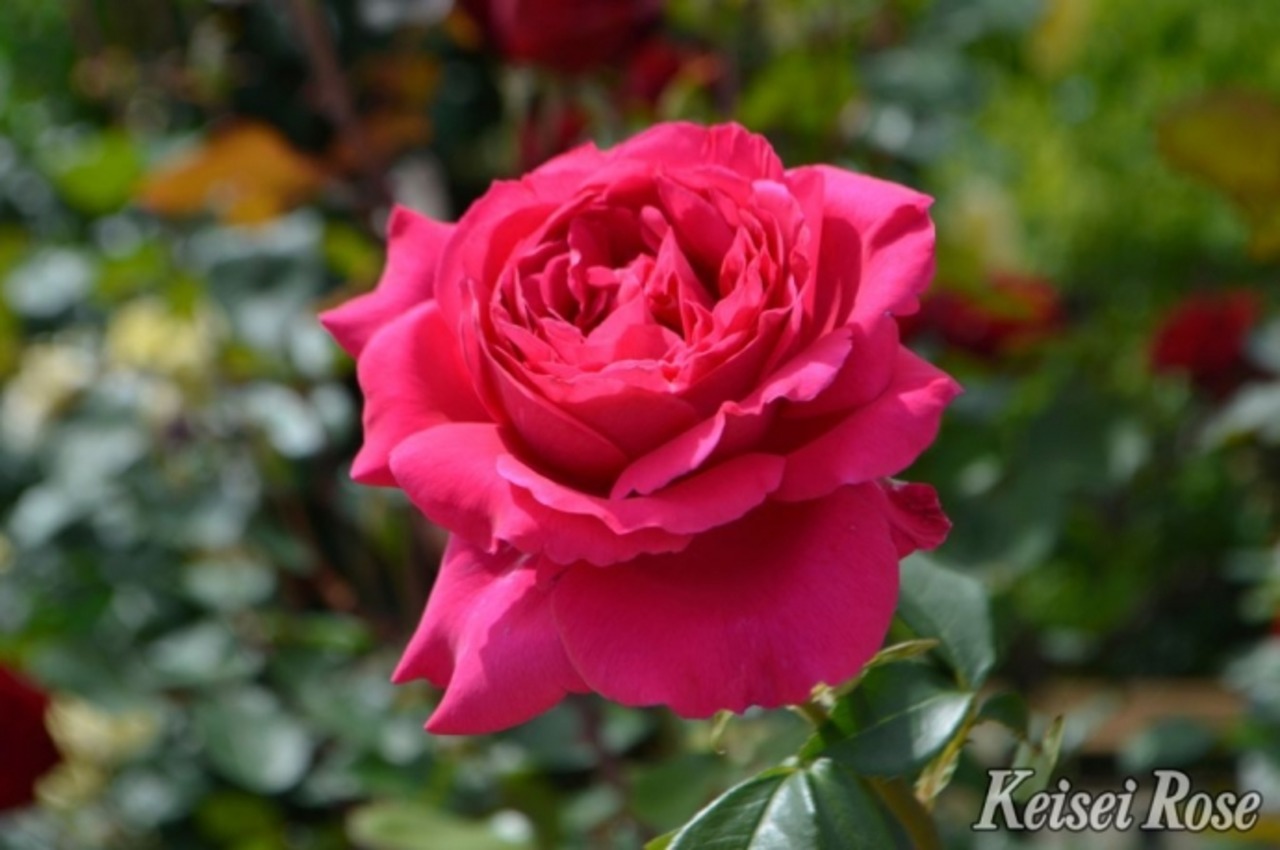 目を奪われる花色の鮮やかさと、ゆるやかにウェーブする花弁を持つ、まさに「女王のバラ」です。濃い緑色の葉も花を引き立たせます。枝の発生が良く、元気な株に成長します。