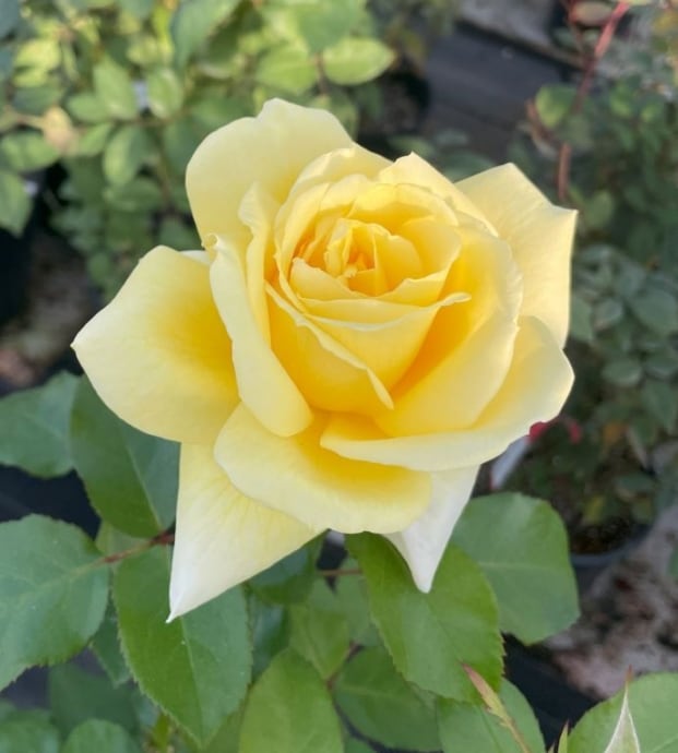 鮮やかなレモンイエローの剣弁高芯咲き。短枝にも花を付け、花保ちが良い。フローラルの強香は周囲に拡がる。