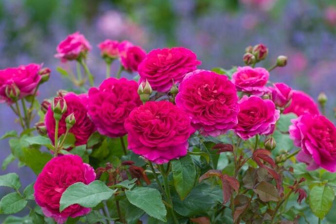 ロゼット咲きの大輪でフルーティーな強香。美しい広がり方で丸みのあるシュラブを形成。