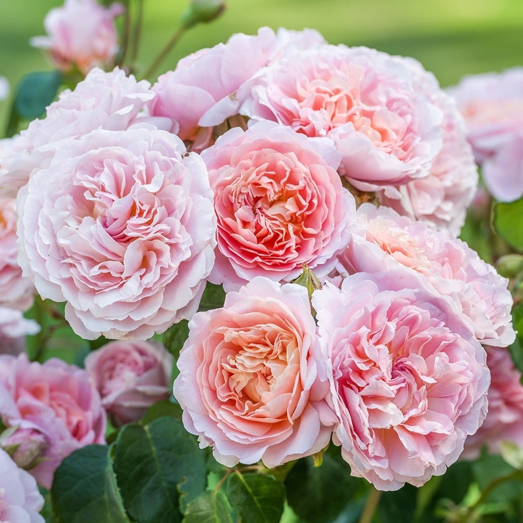 ソフトで輝くようなアプリコットピンクの、極めて愛らしいバラ。繊細でフリルのような無数の花びらが特徴。直立型によく茂る強健なシュラブとなります。