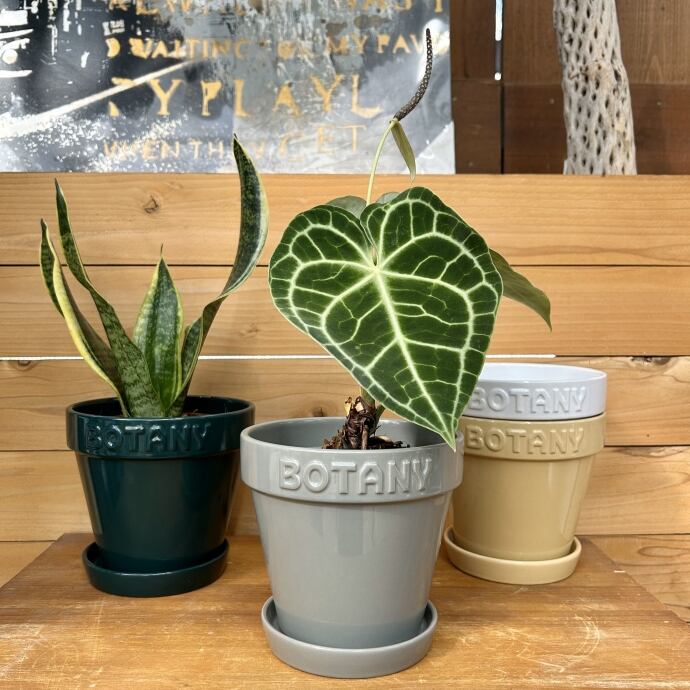 どことなくビンテージ感のあるカラーリングにぼてっとしたBOTANYロゴが特徴的なポット。 単体使用はもちろん、サイズ違いで揃えたり、カラー違いでポットとソーサーの組み合わせを愉しんだり。 インテリアにもスッと溶け込みます。 ポットを愉しみ、植物を愉しむ。そんな空間作りを。